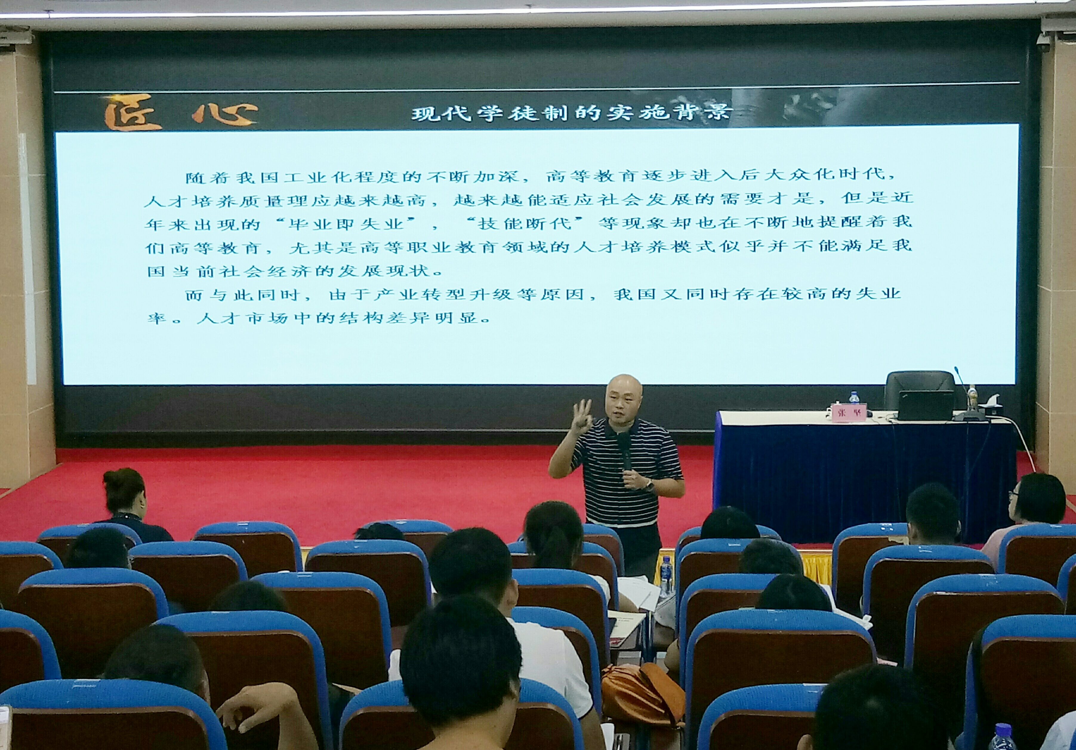 培训项目组结合高职院校兼职教师教育教学能力提升需求,进一步优化培训课程内容和设计内容体系,授课教师分别从现代化职业教育技术与“双元”制人才培养机制建设理论、现代信息化教学手段应用、海南自贸区(港)建设与高技能人才培养、高职院校兼职教师教育教学基本能力与规范、“职教20条”学习与思考、现代学徒制的理论与实践、课堂驾驭技巧与课堂礼仪的运用、新时代高职院校思政课程与课程思政协同育人的路径等八个方面,向学员们阐述了高职院校兼职教师教育教学能力提升的方向、方法与技巧。