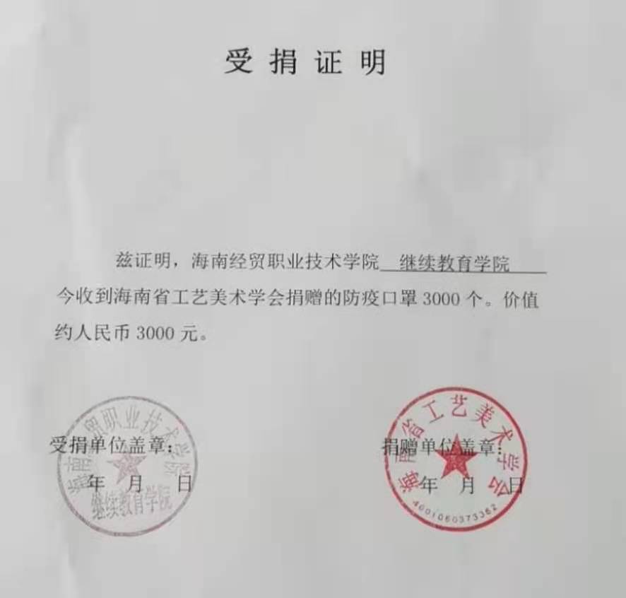 捐赠口罩暖人心,为海南省工艺美术学会点赞!
