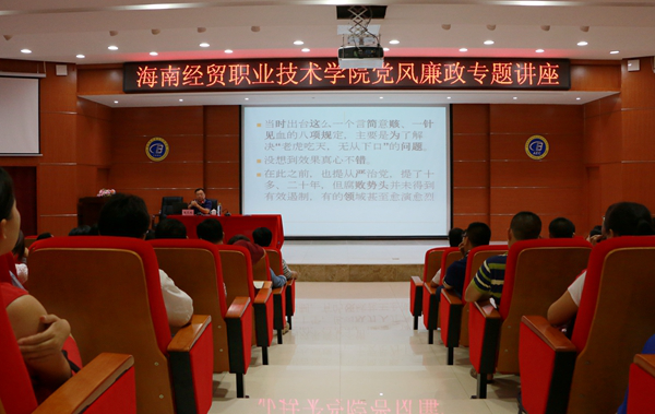 他紧扣全面从严治党主题,结合自己多年的纪检监察工作实践、个人体会和研究,以大量鲜活的腐败典型案例,生动地诠释了党在反腐败斗争中减少存量、遏制增量方面作出的卓有成效地努力。他分析了当前海南教育系统政治生态,归纳了教育系统党风廉政建设工作存在的问题,指出形势决定任务,任务对应责任,每一位党员,尤其是党员领导干部,更应该向全面从严治党看齐,在深化全面从严治党上担责尽职。他强调,高校在教育系统的地位举足轻重,在深化全面从严治党方面应发挥先锋模范作用,率先在校园里实现“天涯一片净土”。