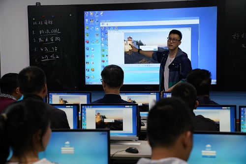 图3:技术中心主任曾湧向考察团队介绍云教室