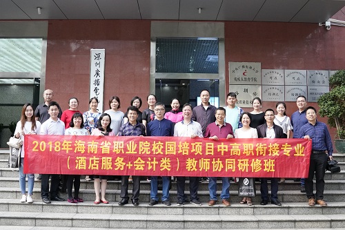 我中心毛江海主任对深圳市开放职业学校近年取得的优异成绩给予了充分肯定,并总结了海南省近几年职业教育发展的状况,鼓励在场的国培班学员大胆提问,共同探讨,共同学习。在随后的会议中,双方教师就紧缺专业以及专业发展方面进行了深入探讨,达成一定的共识,并相互留下了联系方式,以便日后更好地学习交流。最后,双方在深圳市开放职业学校教学楼前进行合影留念。