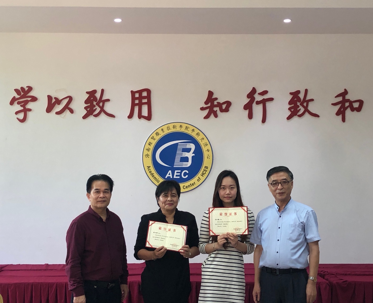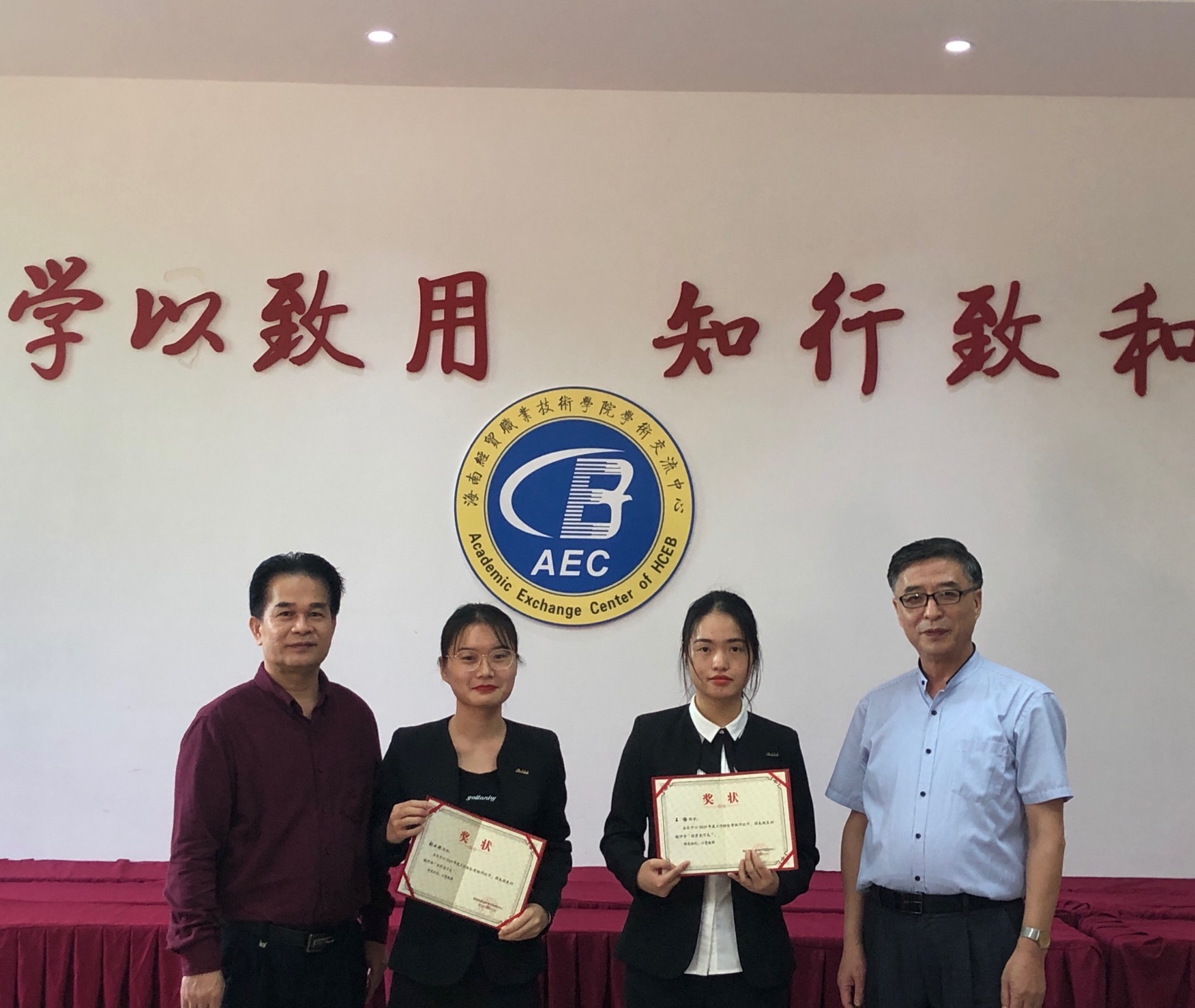 接着,由符海平老师宣读了表彰文件。宾馆经理刘小丽与中心文员史云薇获得“管理新秀”奖,客房部工作人员王兰芳与林芳艳获得“优秀员工”奖,实习生刘小艳和王杨获得“优秀实习生”奖,并由毛江海主任和符海平老师对获得表彰的员工进行了颁奖。