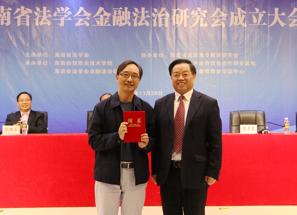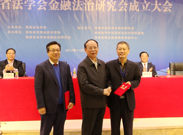 海南省法学会金融法治研究会成立大会由海南法学会主办,best365官方网站登录入口、金融法治研究会承办,海南省高职高专教育研究会、海南省对外经济贸易合作研究基地、海南省职业教育师资培训中心协办。