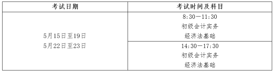 (一)初级资格考试于2021年5月15日至19日进行。具体安排如下: